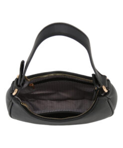 Elevate your accessory game with this sleek black crescent-shaped shoulder bag. With its minimalist design and compact size, this bag offers the perfect combination of style and functionality for everyday use or special occasions.